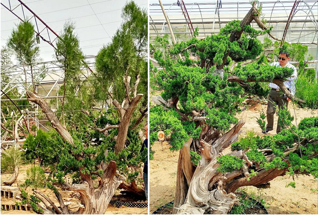 千年古柏迎朝阳, 虬枝滴翠似凤凰。