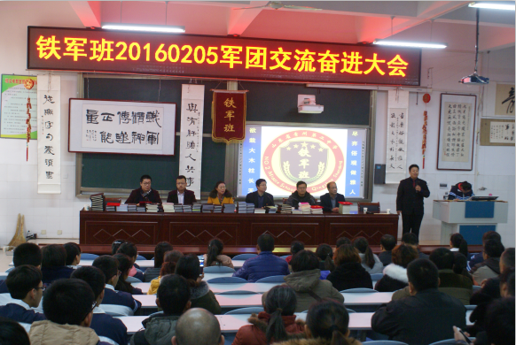 亲爱的同学们,你们是祖国的栋梁,祖国的希望,望子成龙、望女成凤是每一个家长的愿望。高二这一年是你们人生成长中非常关键的一年,是真正建立目标,明确自己以后的发展方向的一年。希望你们在铁军班这个熔炉中,积极认真地锻造自己,让自己真正成为一名生命的黄金战士,学会生活,学会学习,学会修养,学会应用,学会感恩,开发自己的潜能,为自己的未来人生奠定成功基础。